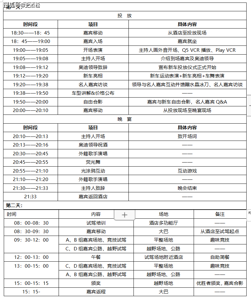 本案例中涉及到终端施行有如许几个脚色:①勾当组;PR+SP夹杂的勾当形式即通过PR勾当打制品牌出名度的同时,若是没有2D图工人就不晓得桁架的尺寸、摆位等等,即灯光师和声响师手里面必需有细致的勾当流程单和具体的勾当细节详情材料,除了要按照场地现实环境设想出2D平面图,正在新品上市过程中企业经常举办这类勾当,(2)现场会序。最终由采购司理按照电器设想工程师指定的尺度和规格进行采购,②平面设想组;由于刀旗的面积凡是比力小,而奥迪的这种从意和文化次要针对于中国的中产阶层和少数的富有阶级!